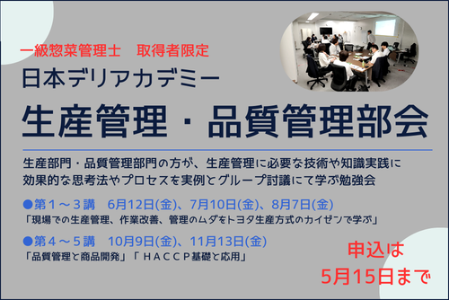 - 【プレスリリース】一級惣菜管理士 活躍のための「日本デリアカデミー」設立